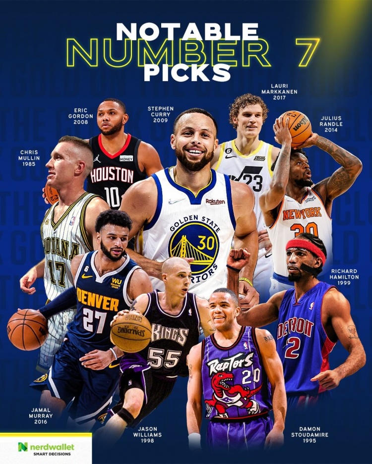 步行者手握7号签。今日步行者官方晒出了历史上一些值得关注的第七顺位球员,他们是: